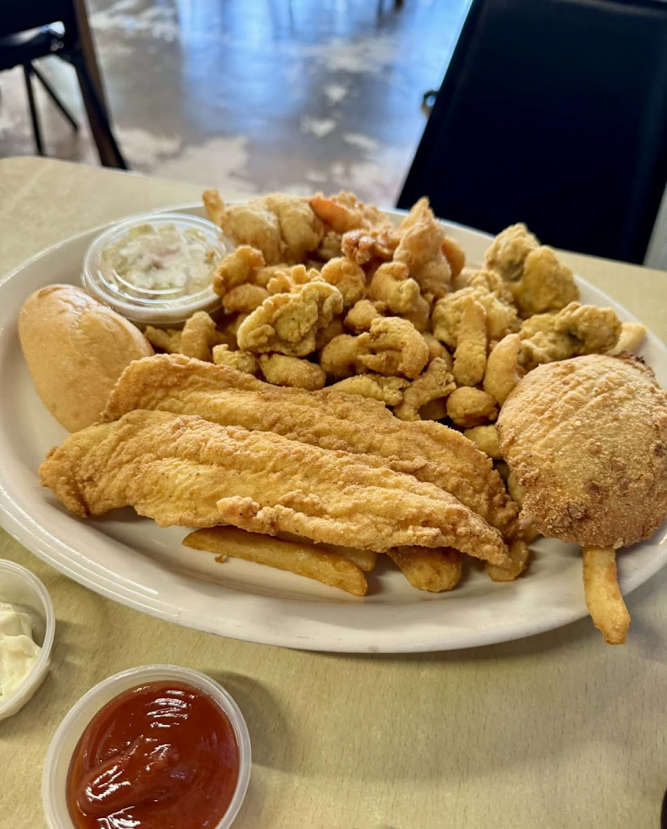 We absolutely loved the food! Flouder and fried shrimp were delish! Salad was fresh and hush puppies were so good! Can't believe we haven't eaten here sooner. The staff was friendly and prices were reasonable. Definitely check this place out!